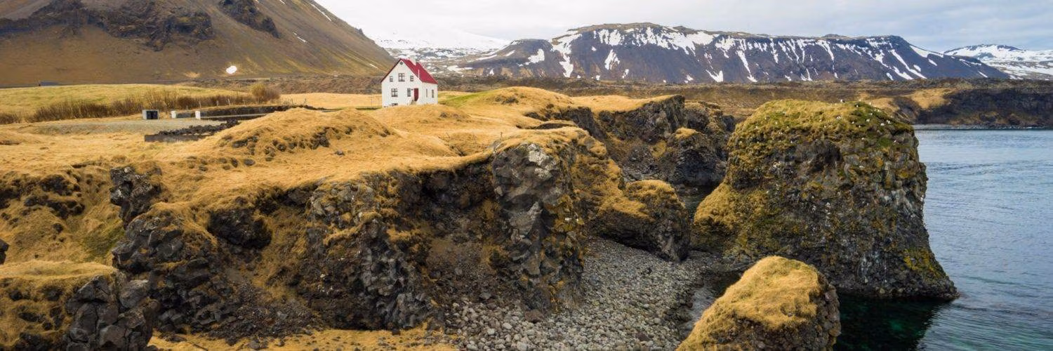 Your eyes will be short on a tour of the peninsula. You drive there along the rugged coastline and old fishing villages. One is the village of Arnarstapi, located in the south coast, a former trading post. Drive to the sea here and you will be rewarded with a fantastic view. Along the coast you will find beautiful basalt formations, including the photogenic rock arch below. Hundreds of birds nestle in the cliffs and fly around. The water here is so intensely blue and with the snow and mountains in the background, that produces very special pictures. You can also take a nice walk along the coast to the nearby village of Hellnar.