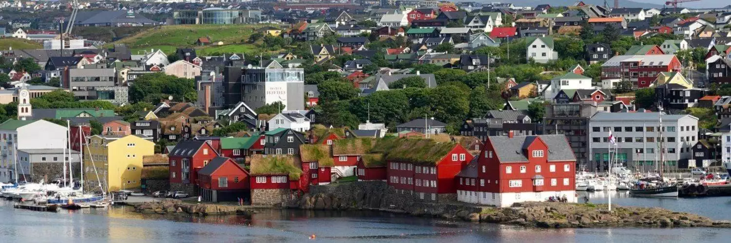 Tórshavn means the port of Thor, the god of thunder and lightning from Norse mythology. Thor’s hammer occupies a considerable position on the city’s coat of arms. The city is located on the east coast of the island of Streymoy. This is the largest island of the Faroe Islands. In the north-west of the city lies the 347-meter high Húsareyn mountain and in the southwest is the Kirkjubøreyn mountain of 350 meters high. Tórshavn has an area of 185 km².