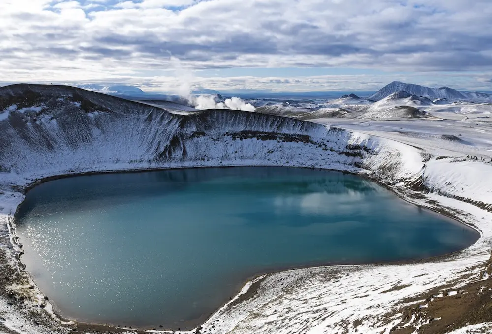 You can see the volcanic activity in countless places in the country. In a travel day you can see volcanoes, hot springs, bubbling mud pools, smoking geothermal areas with fumaroles, lava fields, craters, pseudocraters, crater lakes and geysers.